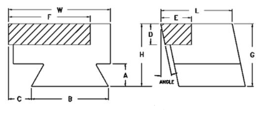 CAT.NO. | H | W | L | A | B | C | D | E | F | TAP | ANGLE | GRADE |
