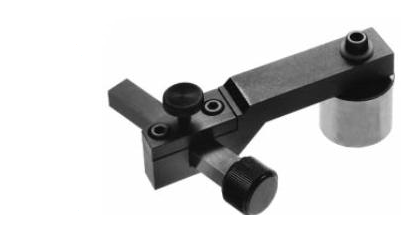 The gage is of particular advantage when setting cross slide tools that do not cut to the center of the work. Thread chasing and longitudinal turning tools are in this category. Also, this gage permits replacing circular form tools on center after sharpening without changing the size setting.